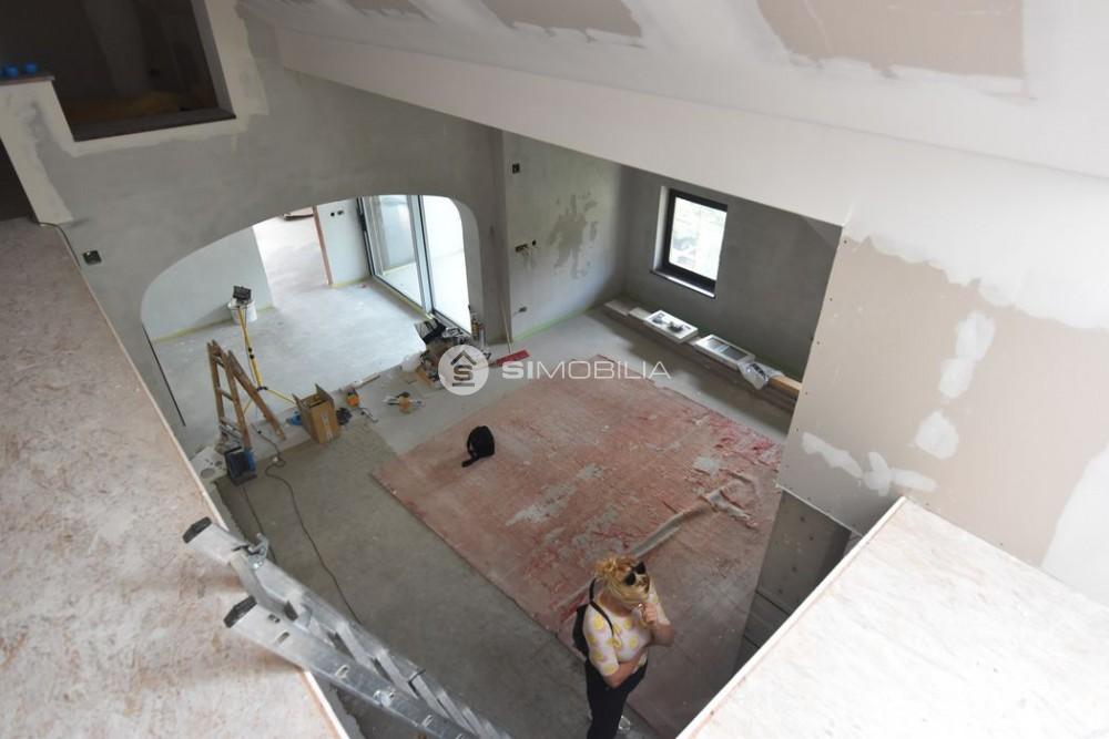 In the attic, up to 4 construction phases, a modern, bright, spacious, open apartment is arranged. In this part there are two studios, one is made as a duplex.In the central part is a large open space, with a gallery. Here are two bedrooms, a larger bathroom, toilet, kitchen. From the kitchen and living room, there is an exit to a larger terrace on the south side of the building. From the bedrooms there is an exit to the balcony on the west side of the building. In the gallery, it is possible to arrange a library, social space, rest area, reading room. The attic has underfloor heating in all rooms.