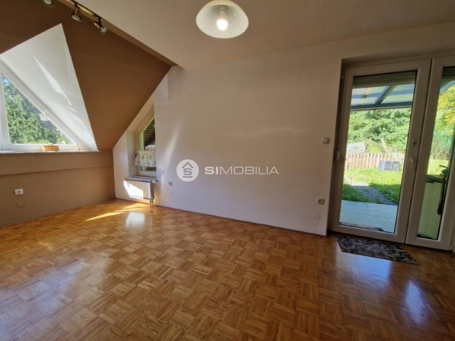 Mansarda: hodnik, spalnica, otroška soba, kopalnica (WC, tuš), kuhinja povezana z dnevno sobo
