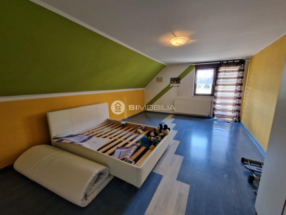 Nadstropje: predprostor s krušno pečjo, dnevno-bivalni prostori s kuhinjo, 2 sobi in kopalnica