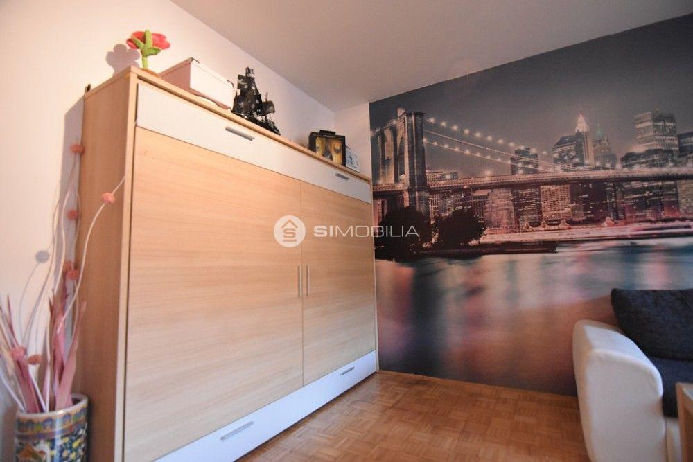 V dnevno-bivalnem prostoru je urejena omara, ki se preoblikuje v posteljo. Tako zagotavlja dodatno ležišče (zakonska postelja).