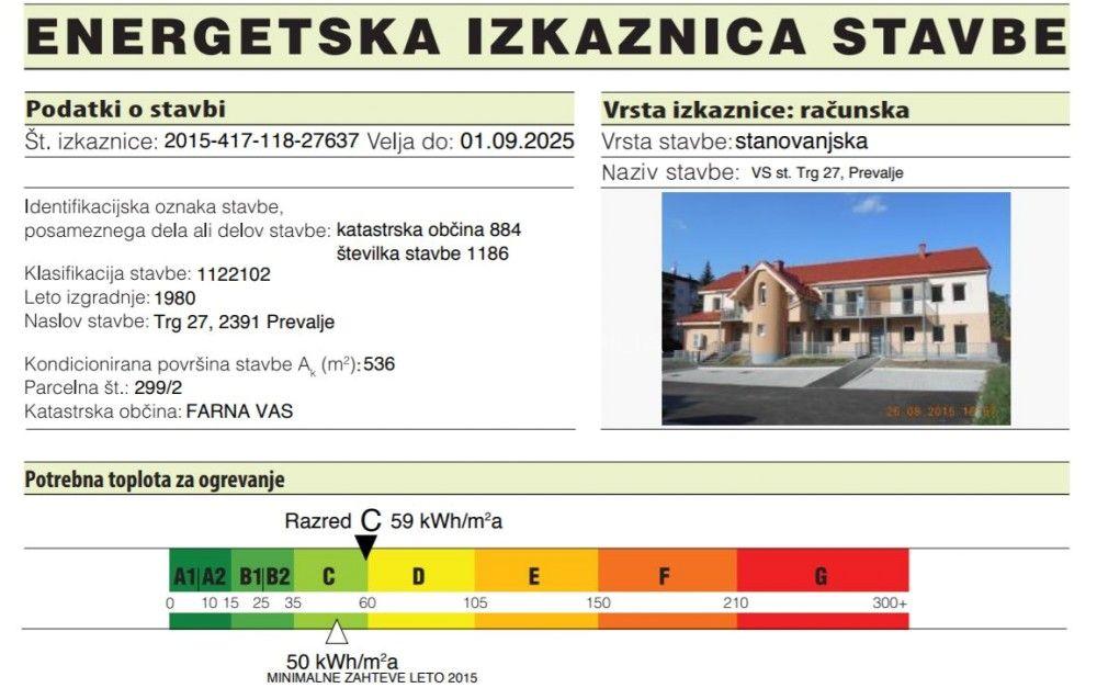 Na Prevaljah prodamo 3-sobno stanovanje, ki se nahaja v prtiličju večstanovnjske stavbe obnovjene l. 2015.