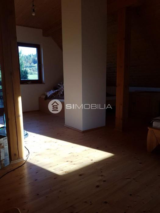 V mansardi je soba/spalnica s 5 ležišči in urejen je izhod na balkon.