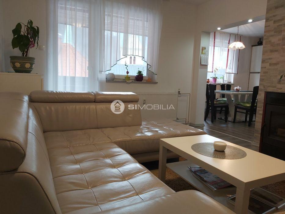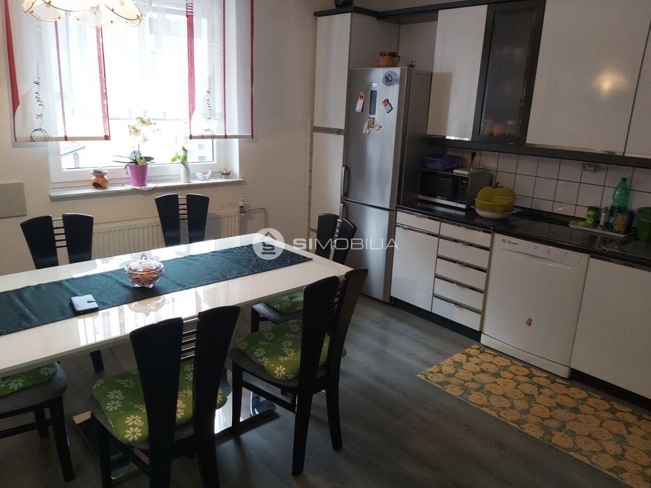Dnevna soba je povezana s kuhinjo in jedilnim kotom, iz dnevne sobe je izhod na veliko balkon.