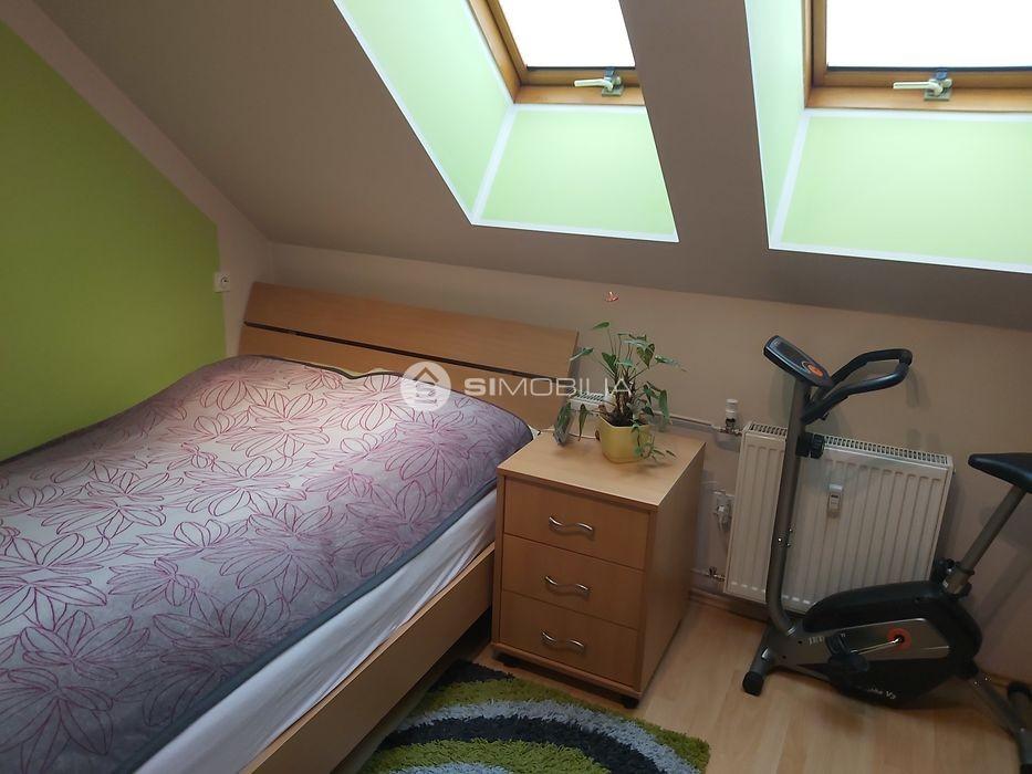 hodnik, otroško sobo, spalnico, dnevno sobo, kuhinjo z jedilnim kotom, kopalnico, WC, shrambo.